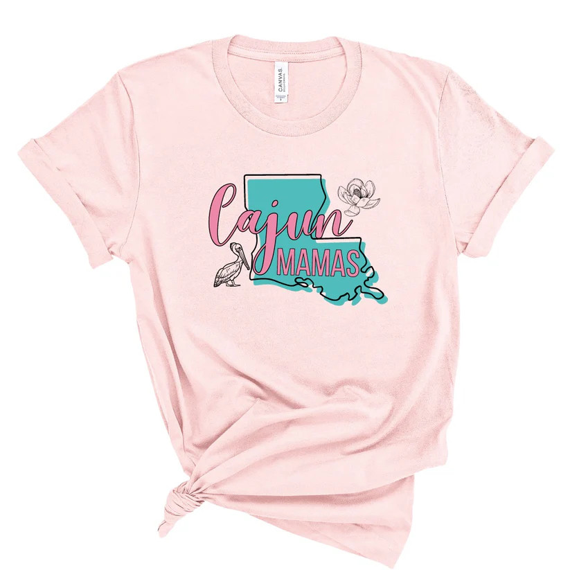 Cajun Mama's signature logo on a super soft Bella + Canvas Brand tee. Light Pink. Unisex.