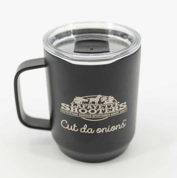 Featuring the Lafayette Shooters logo — Outfitting Serious Sportsmen Since 1967 — this mug keeps your beverage hot and your Louisiana roots even hotter. Whether you're in the deer stand or behind the stove, it's always a good time to start cuttin' da onions.