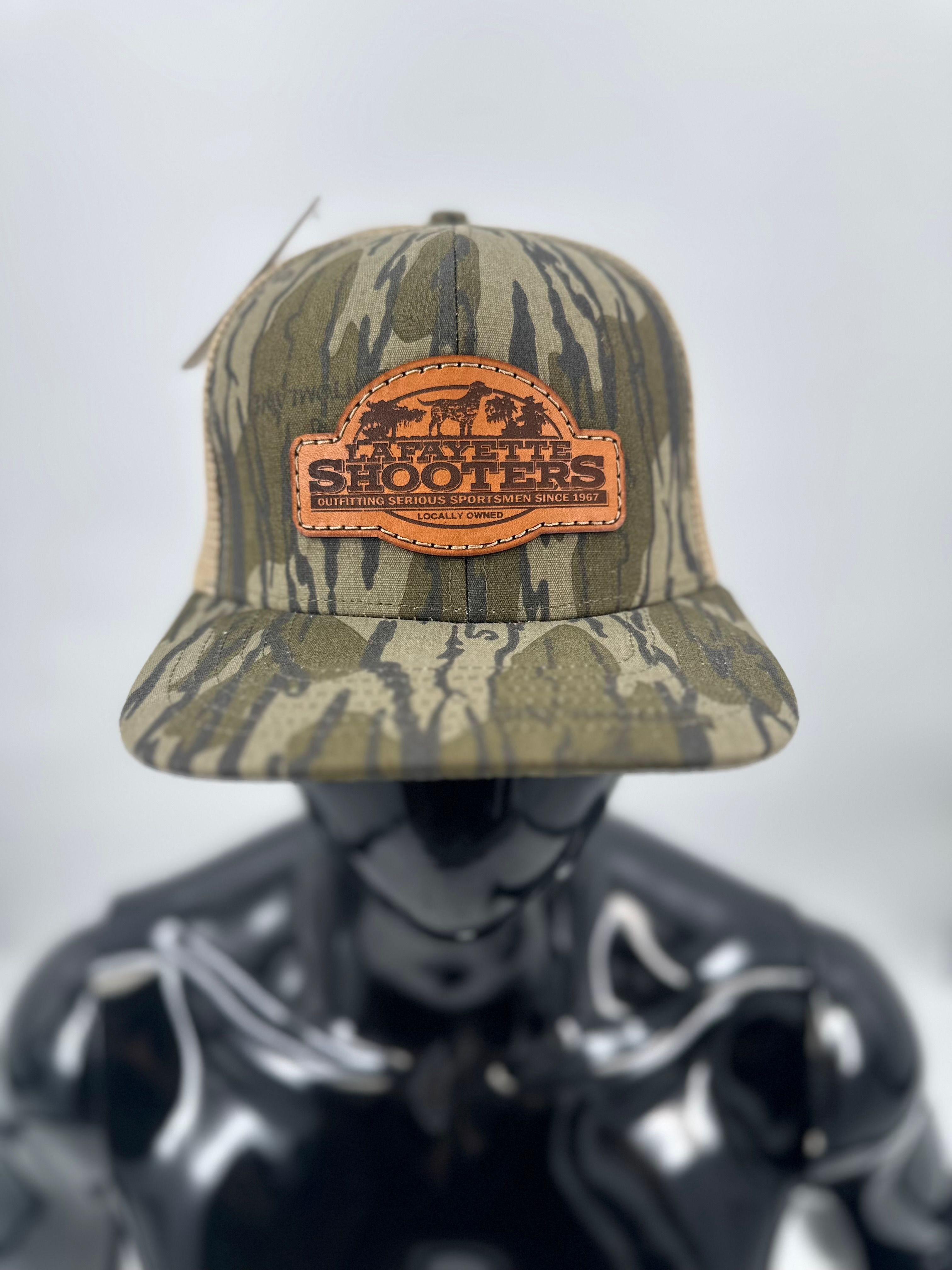 Green Woods Camo – Designed with a classic woodland camouflage pattern, this hat blends rugged style with outdoor functionality. The structured crown features a premium leather patch stamped with the Lafayette Shooters logo, honoring our legacy of outfitting serious sportsmen since 1967.