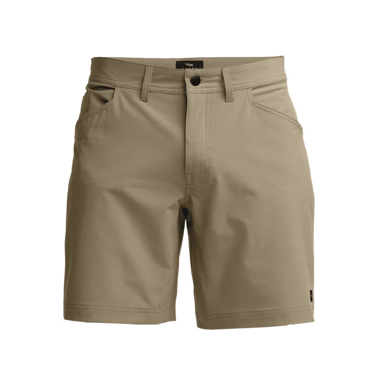 Five-pocket design, includes a knife pocket and zippered pocket on the thigh