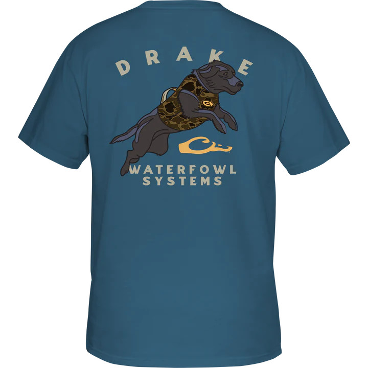 $29.99The Drake Waterfowl Graphic Tee is constructed with a 60% cotton and 40% polyester blend which supplies softness and comfort. The Drake Waterfowl Graphic Tee has a Drake logo on the front pocket and depicts a Black Lab from our Retro Series of back graphic tees.