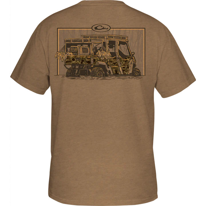 The Drake Waterfowl Graphic Tee is constructed with a 60% cotton and 40% polyester blend which supplies softness and comfort. The Drake Waterfowl Graphic Tee has a Drake logo on the front pocket and depicts a side x side in the field. From our Trucks of Drake Series of back graphic tees.