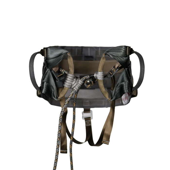 Metal Free Construction – The first saddle with metal free construction, we replaced the traditional waist belt with our proprietary rope belt design. Built from a custom blend of UHMWPE and polyester and using a load rated adjustable climbing knot, our rope belt reduces weight, is deadly silent, has infinite adjustment, and prevents the saddle from falling down while hiking.